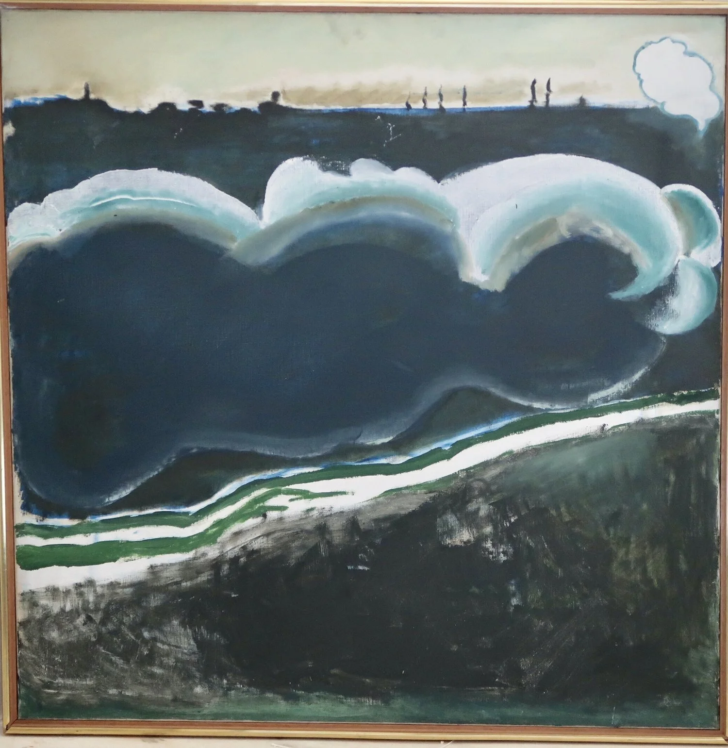 This painting is characteristic of the later phase of Inlander’s career during which he explored the relationships among form, landscape and colour. He was not, as some critics have suggested a figurative painter. Rather and more importantly, he struggled with the relationship between figuration and abstraction. He was interested in the paradoxes of representation. Any scene can appear to be natural but most scenes in painting are constructed from the imagination of the artist. Inlander never painted in situ and always used his studio as an environment to imagine the scenes he painted. At the same time, the paintings are often seen as reproductions of the Italian landscapes he loved that negate the fact that he was never interested in realism. If this seems paradoxical then the painting below is an example of the extent to which he was ready to find the essence of a scene. That is the clue to something more profound, which is that he always tried to represent his emotional response to landscapes, an author who also examined his authorship, likes, dislikes and choices.