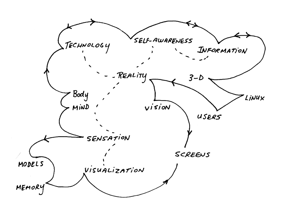 Consequently, software is being pushed into realms of greater and greater complexity. The underlying impact of all of this activity is quite ironic: as machines take on more and more tasks, it becomes less and less clear how intentionality (who did what and why) actually comes into play at both the hardware and software level. For a computer or a phone or a tablet to be powerful enough to do what we expect of them, millions of lines of code have to be written. In effect, this is another level of data construction and visualization (however abstract).